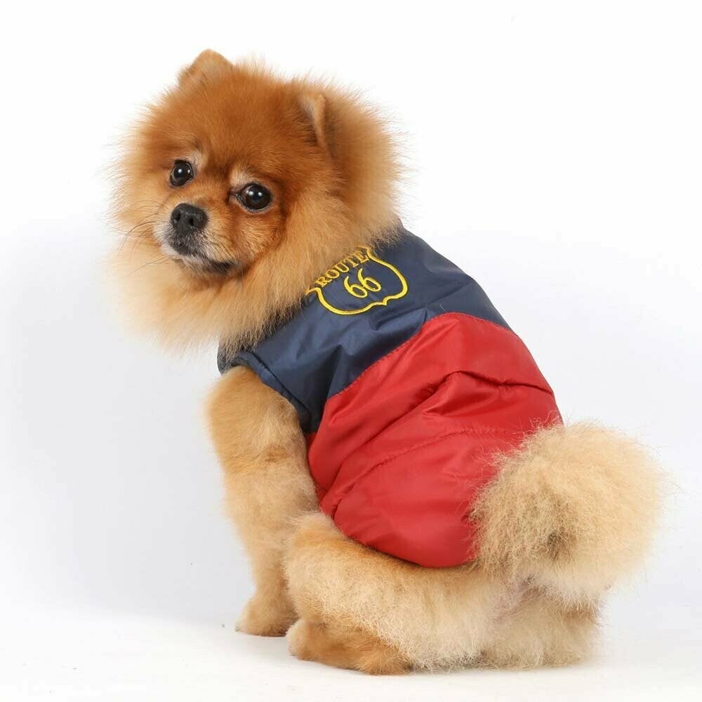 DoggyDolly W049 (3+42) Hundeanorak Route 66 blau rot