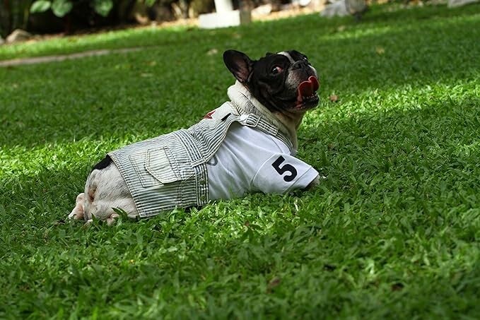 Doggy Dolly DC038 (26) Mops, Bulldoggen & Friends Kleid mit Latz, blau Jeans ist das ideale Kleid für den Sommerurlaub. Der Rock ist aus hochwertigem Material gefertigt und hat ein einzigartiges Design. Der Latz gibt dem Kleid einen besonderen Look und die blaue Farbe passt zu jedem Outfit.