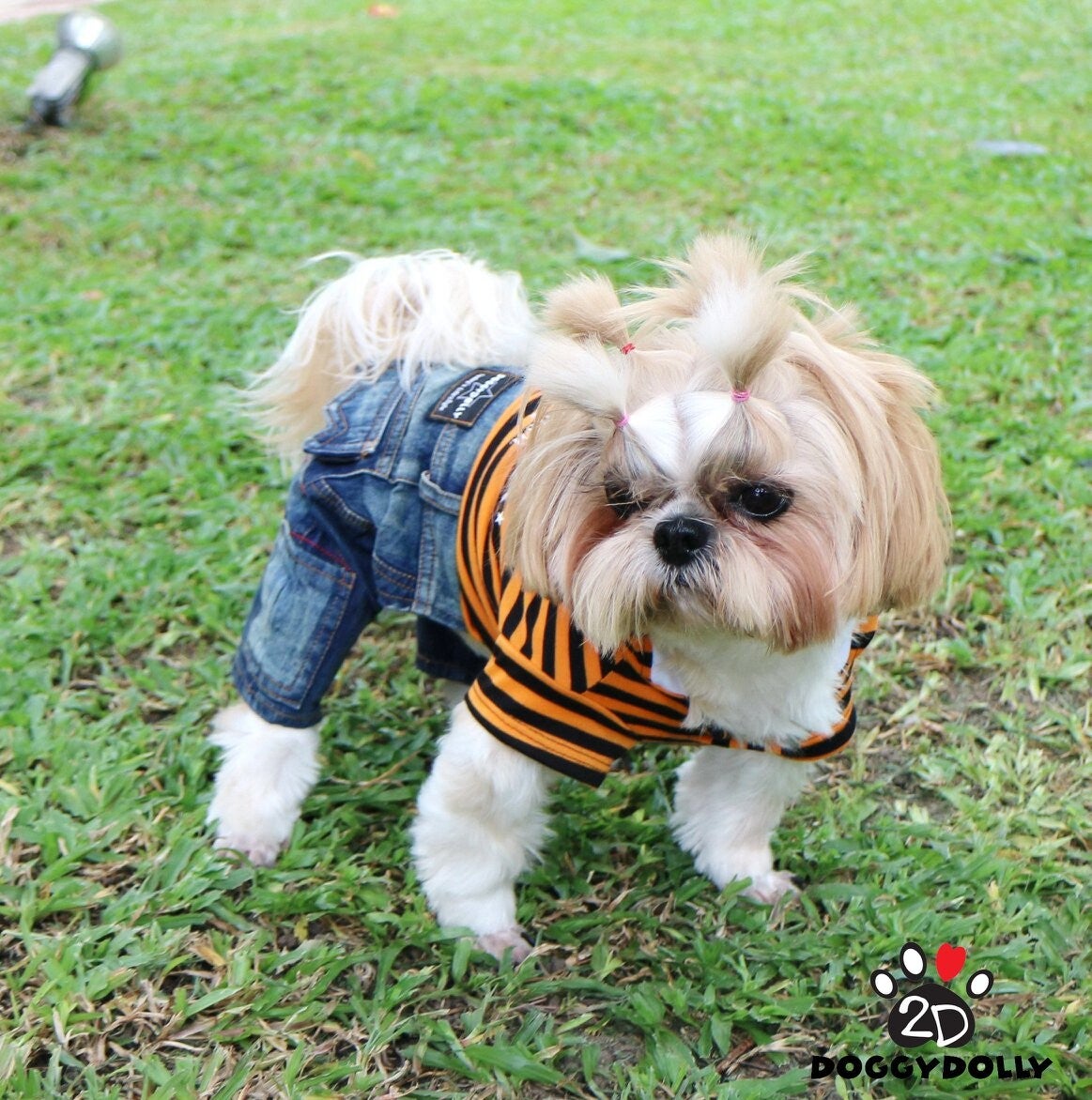 DoggyDolly C244 (46) Hundekombi, bestehend aus einer trendigen Jeanshose und einem coolen T-Shirt in Orange. Die Kombination vereint sportlichen Stil mit gemütlichem Tragekomfort und ist perfekt für aktive Vierbeiner. Ideal für Spaziergänge, Ausflüge oder einfach nur zum Relaxen zu Hause. Ein Must-have für jeden modebewussten Hund!